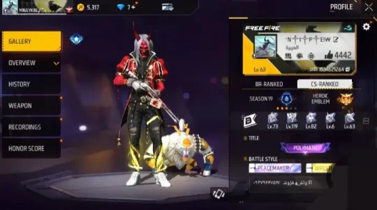 جم فری فایر با اطلاعات اکانت