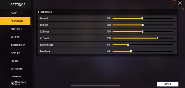 طبیعتا گیمرهای حرفه ای تنظیمات موردنیاز برای یک هدف گیری دقیق و بی نقص را خیلی خوب می دانند. در این بخش از مقاله می خواهیم این تنظیمات را در اختیار شما قرار دهیم تا بتوانید به راحتی و بدون نیاز به تمرین و تکرار بهترین هدف گیری را داشته باشید. برای افزایش حساسیت هدشات فری فایر به تصویر زیر دقت کنید: