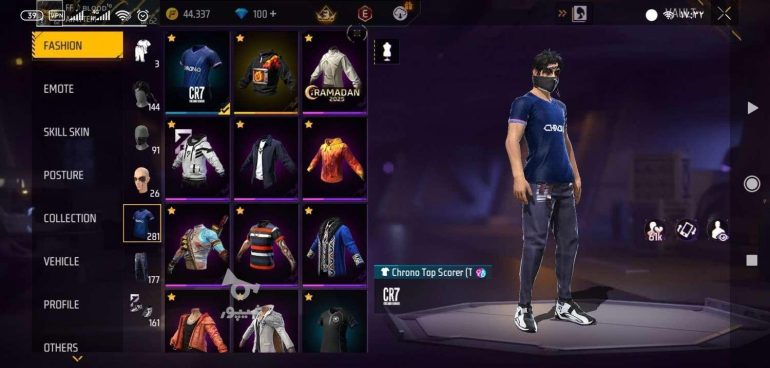- سطح (Level) اکانت، اسکین ها، کاراکترها، سلاح، لباس ها، حیوانات خانگی، مبلغ جم