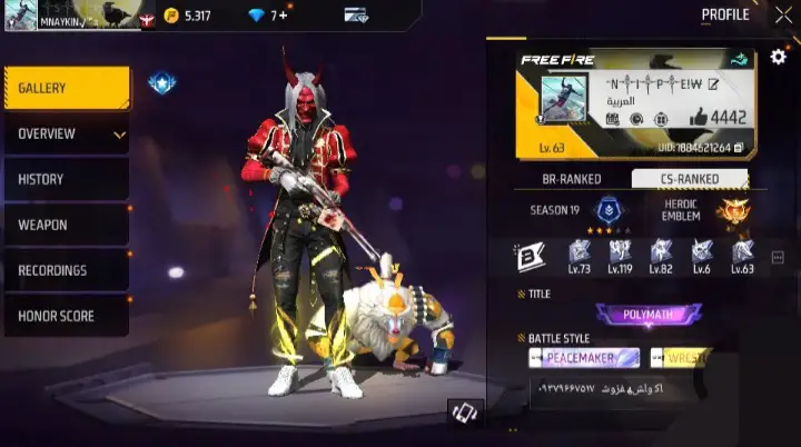 ارزش یک اکانت فری فایر تا حد زیادی به میزان پیشرفت و آیت مهای درون آن بستگی دارد. قبل از خرید، جزئیات دقیق اکانت را بررسی کنید: